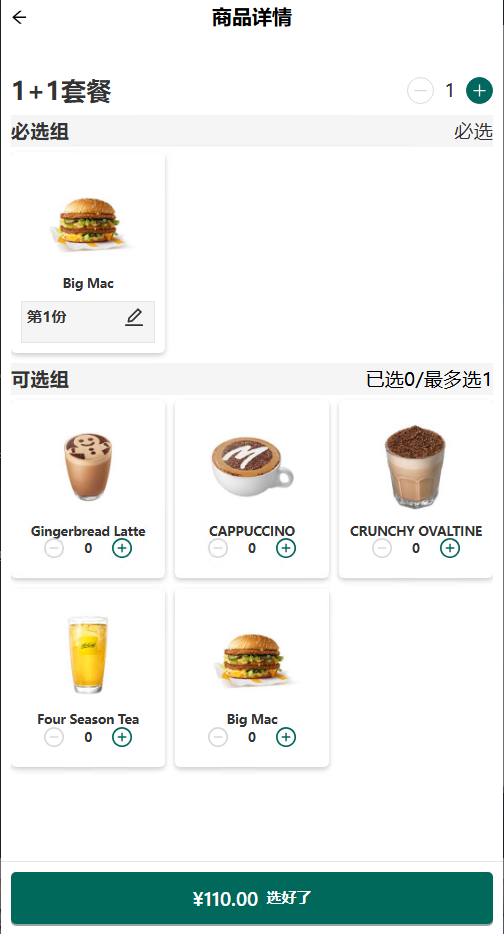 2、升级菜品详情与套餐能力,支持套餐菜品选择、调味品选择与展示逻辑优化。