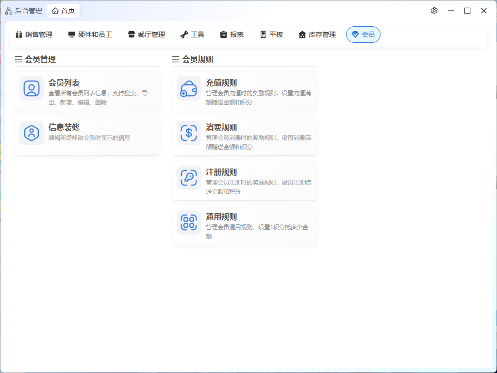 1、持续推进餐饮后台2.0建设,完成会员管理核心能力开发与优化,覆盖会员新增、编辑、充值、消费、积分调整、卡状态管理等完整流程,并同步完善会员相关小票打印。