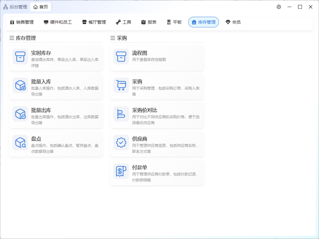 2、持续完善餐饮库存能力,支持库存查询、出入库、盘点流程,并跟进餐饮与零售库存同步问题修复。