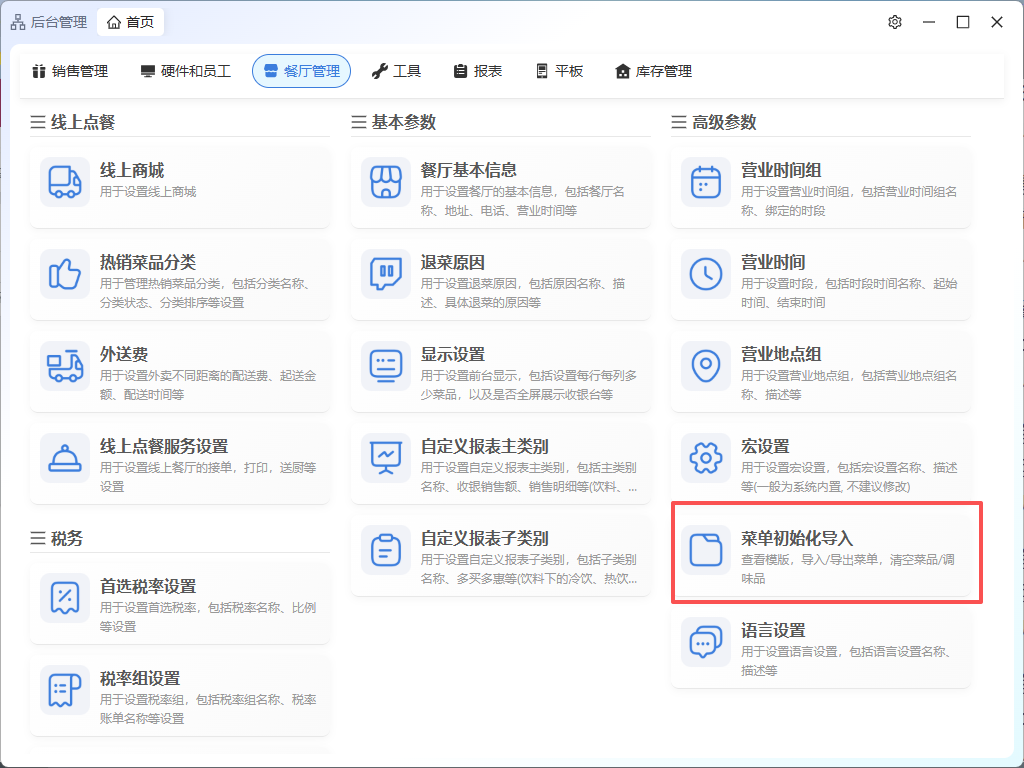 9. 收银后台,新增菜品初始化导入