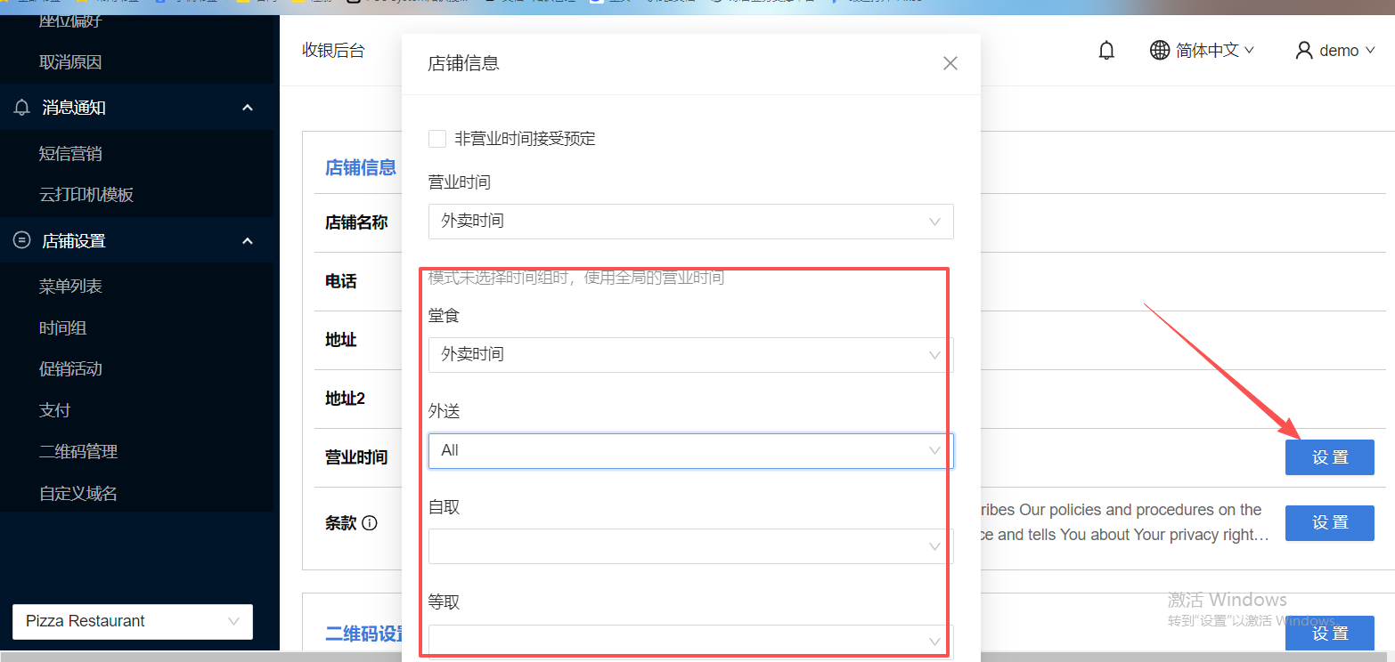 27. 门店装修,增加自取、外送、堂食、等取营业时间设置
