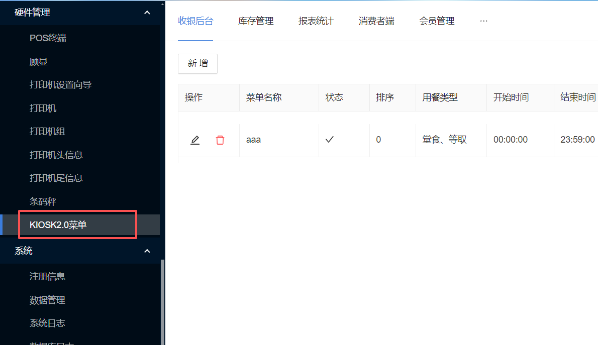 7. 收银后台,新增Kiosk2.0菜单管理