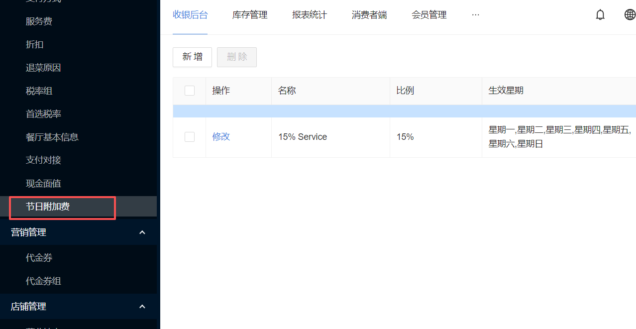 3. 收银后台,服务费,增加节日附加费设置